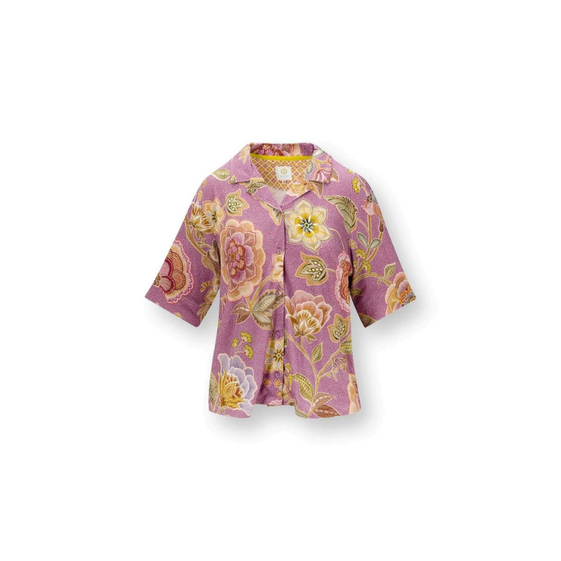 El Top Flora es una prenda elegante. Cuenta con mangas cortas, cuello con muesca y un corte oversize. Está confeccionado en un tejido de viscosa brillante tejido que se siente maravilloso sobre la piel, proporcionando comodidad y frescura al usarlo. El estampado Matata presenta grandes flores y hojas, inspiradas en los estampados de cera africana. Las flores están decoradas con bordes punteados, rayas y otros detalles juguetones. El fondo tiene un sutil patrón de lunares.