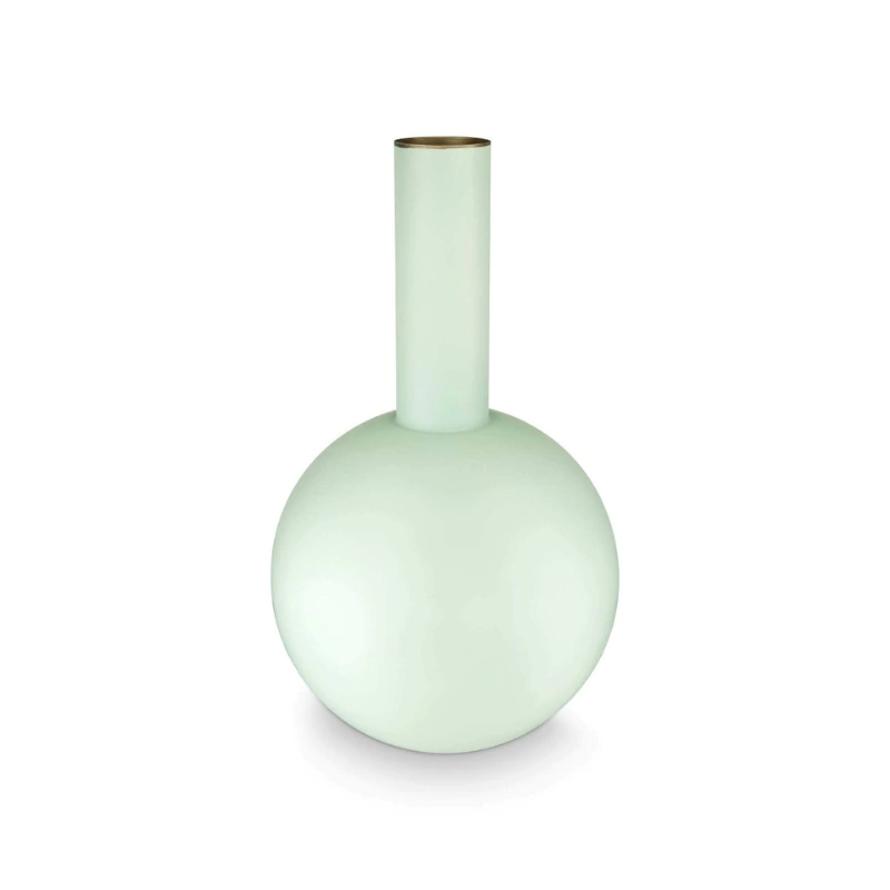 Aporta un toque de color a tu hogar con este florero de metal en verde. Cualquier ramo de flores lucirá espectacular en él. Combínalo con uno de nuestros ramos artificiales Pip y crea un verdadero punto focal en tu decoración.¿Estás pensando en renovar tu hogar? Explora nuestra colección de artículos decorativos.